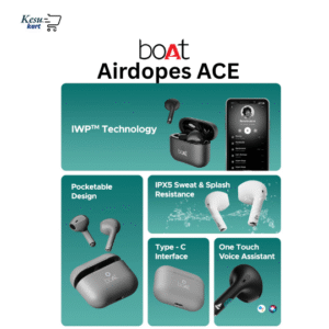 The boAt Airdopes Ace are true wireless earbuds designed for long battery life, low latency, and everyday convenience. They blend strong audio performance with features useful for gaming, workouts, calls, and travel.