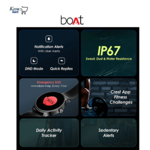| Operating System / UI | Runs boAt’s Crest+ OS. Includes Wake-Gesture support, DIY Watch Face Studio for customizing watch faces. |